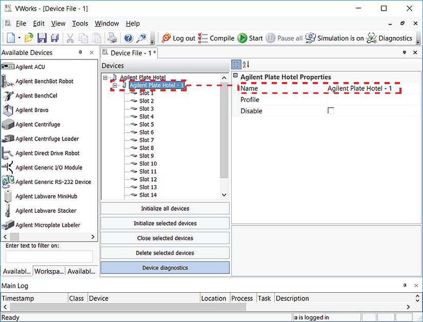 1 In the device file, add the Plate Hotel device. See Adding devices for instructions.