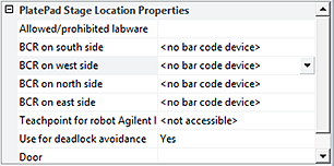 4 In the PlatePad Stage Location Properties area, type or set the following: