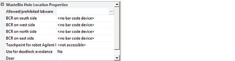 4 In the Waste Bin Hole Location Properties area, type or set the following: