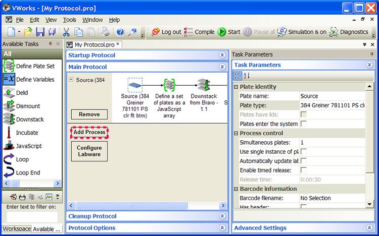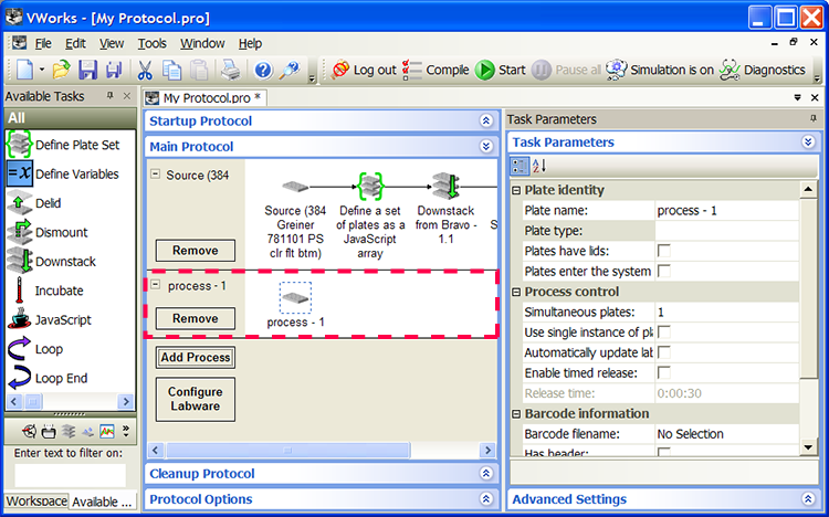 Adding processes About processes You can add processes at any time when you are creating the protocol. In addition, you can add multiple processes in one protocol. Procedure To add a new process: In the Main Protocol, click Add Process. A new process lane appears. Related information For information about... See... Processes About protocols, processes, and tasks Process plates About protocols, processes, and tasks Configured labware Configuring labware