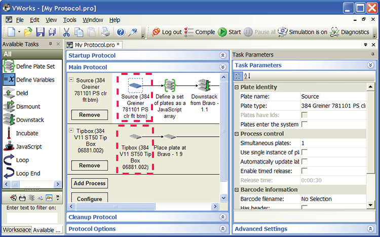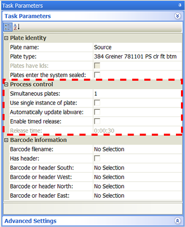 • The value is too low. The time for the protocol run can be longer than desired.You can use the Enable timed release and Release time plate properties to control the microplate release rate and prevent bottlenecks and deadlocks. An optimum release rate should balance the number of microplates entering into the system with the number of microplates exiting the system.