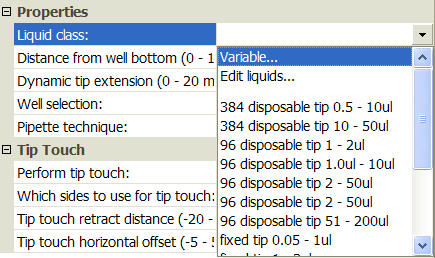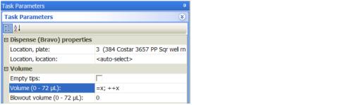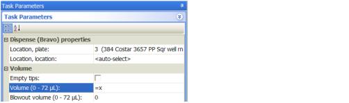 • Task parameter variables. You can define a variable for almost any parameter. For example, in the Aspirate task, you can define a variable for the Volume parameter. For more information, see Task parameter variables.