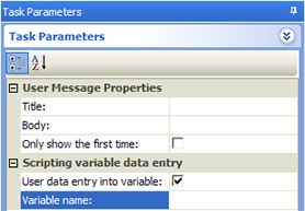 2 In the Task Parameters area, type values and select the desired options in the User Message Properties table. For a description of the properties, see User Message.