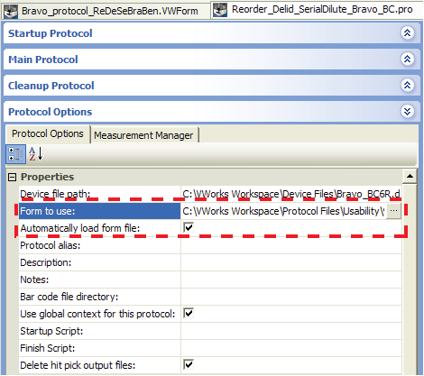 a In the VWorks window protocol tab, under Protocol Options > Properties, click the Form to use field, and then click thebutton that appears.