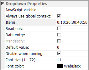 3 Edit the Properties for the control. The properties can include a combination of the following depending on the control:Note: If you want one control to overlap another control on the form, select the control that you want on top, and then click Bring selected control to front.