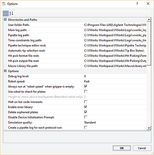 • Robot-handling speed for labware. Specifies the maximum speed at which the robot can move when handling a specific type of microplate. This parameter is set in the Labware Editor on the Plate Properties tab.For more details on the Labware Editor, see the VWorks Automation Control Setup Guide.