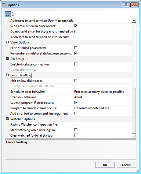 • Starts a specified software application anytime a VWorks error occurs. For example, if this check box is selected and an error occurs containing the text, “Your PlateLoc is out of seal,” a command will be generated that says:<filepath>\ABC.exe Your PlateLoc is out of seal