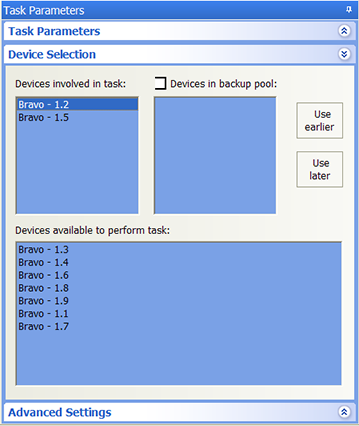 3 Optional. Select backup devices to use in case all of the devices in the Devices involved in task area encounter an error.