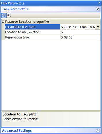 The Reserve Location task () reserves a location on the Bravo Platform for a specified length of time. The task is typically used to incubate a microplate at that location.