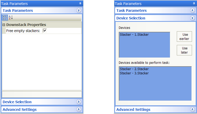 2 To prioritize its use, select the device in the Devices involved in task area, and then click User earlier or Use later. The devices that are higher in the list are favored by the software scheduler during the protocol run.