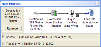 For example, if a set of microplates were unloaded from Labware MiniHub A cassette 3, selecting this option in the Load task would move the microplates back to Labware MiniHub A cassette 3. Double-click a location in the Available locations area. The selected location appears in the Assigned locations area. Double-click a location group in the Available locations area. The selected location group appears in the Assigned locations area.To view or revise existing location groups, click Edit location groups. Double-click a plate group in the Available groups area. The selected plate group appears in the Assigned locations area.To view or revise existing plate groups, click Edit plate groups.Example: Load microplates into the Labware MiniHub after processingLoad the destination microplates into Labware MiniHub cassettes 1 and 2, and cassette 3 slots 1 and 2 after the specified liquid-handling tasks.