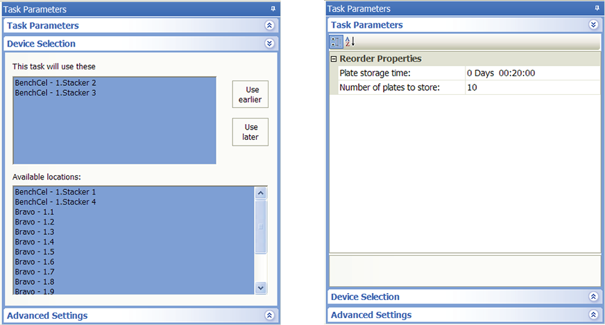2 To prioritize its use, select the device in the Devices involved in task area, and then click User earlier or Use later. The devices that are higher in the list are favored by the software scheduler during the protocol run.