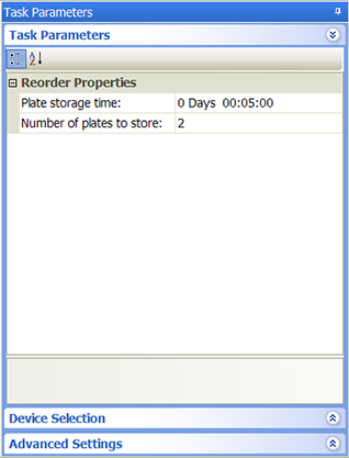After adding the Reorder task at the desired point in the protocol, select the task, and then click Device Selection in the Task Parameters area.