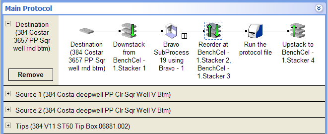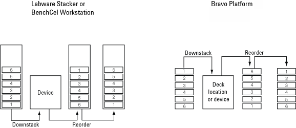 Main Protocol, Bravo Subprocess At least two stacking locations are required for the Reorder task. For example, you need at least two Labware Stackers, two BenchCel stacker heads, or two Bravo deck locations.To use the Reorder task in a Bravo Subprocess, you must: