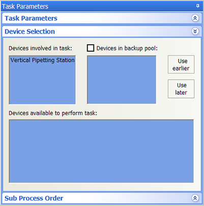 2 If you have multiple devices in the Devices involved in task area, select a device, and then click Use earlier or Use later to prioritize it.