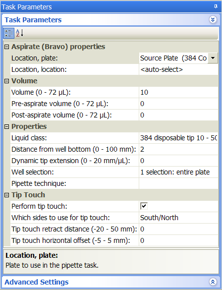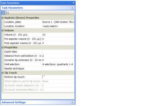 The Aspirate (Bravo) () and Aspirate (Vertical Pipetting Station) (