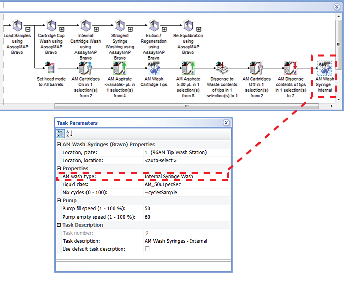AM Wash Syringes (Bravo)The AM Wash Syringes (Bravo) () task enables the following types of washes using the Bravo 96AM Head: