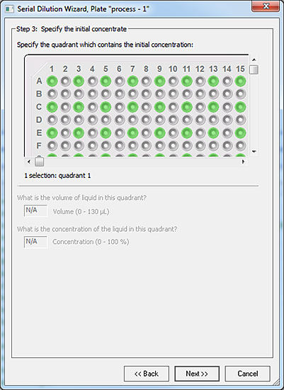 1 In the Task Parameters area, click Launch serial dilution wizard. The Serial Dilution Wizard dialog box opens.