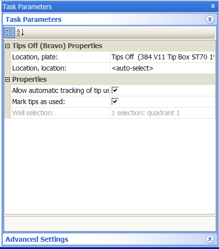 4 To remove the tips at the Bravo trash location, ensure that Tip Trash is selected in the Tips Off Task Parameters area.