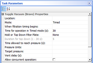 Timed. If you plan to time the filtering process, add only one Toggle Vacuum task. The task turns on the vacuum, and then turns off the vacuum automatically at the end of the time period.