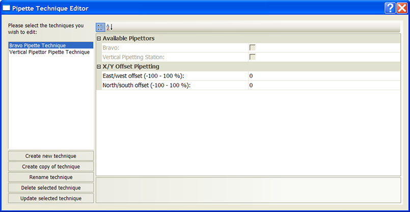 1 In the VWorks window, on the Tools menu, click Pipette Technique Editor. The Pipette Technique Editor dialog box opens.