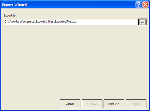 3 When you are finished, click Finish. The .vzp file appears in the specified location.You can move the .vzp file to another computer and import it into the VWorks software, or send the .vzp file to Automation Solutions Technical Support to report a problem.
