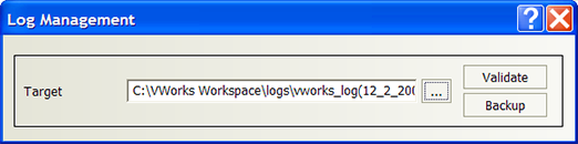 1 With the protocol file open in the VWorks window, select Tools > Log Management. The Log Management dialog box opens.
