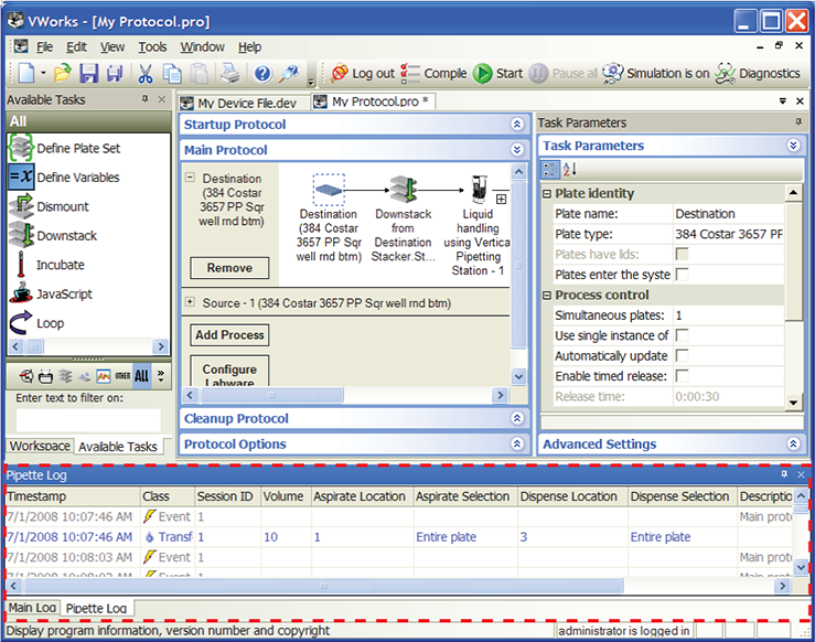 • VWorks pipette log fileViewing the Pipette Log in the VWorks windowTo view the Pipette Log in the VWorks window: