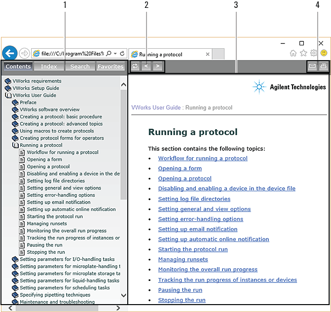 Content area. Displays the selected online help topic.